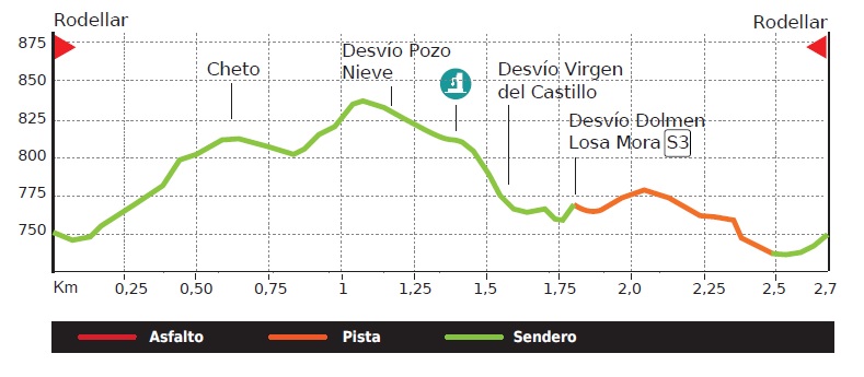 La première partie de l’itinéraire emprunte le «Camino de la Montaña » entre des murets en pierre sèche (créés pour empêcher le bétail en transhumance de pénétrer dans les champs de céréales). En suivant ce chemin, nous traverserons le village inhabité de Cheto.